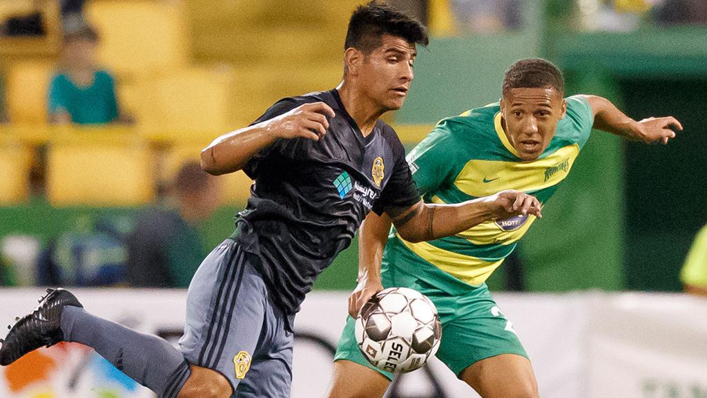 Arriving from Fresno Pacific, Anthony Velarde has already made an impact for Pittsburgh Riverhounds SC in his first two professional outings. | Photo courtesy Matt May / Tampa Bay Rowdies