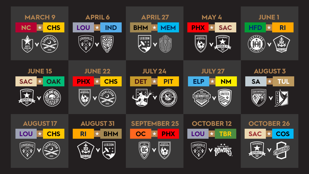 Tag(s): Features San Antonio FC CO Spring Switchbacks Orange County SC Phoenix Rising FC Sacramento Republic FC FC Tulsa Charleston Battery Louisville City FC Pittsburgh Riverhounds Tampa Bay Rowdies Birmingham Legion FC Indy Eleven Memphis 901 FC El Paso Locomotive FC New Mexico United Hartford Athletic Oakland Roots SC Detroit City FC