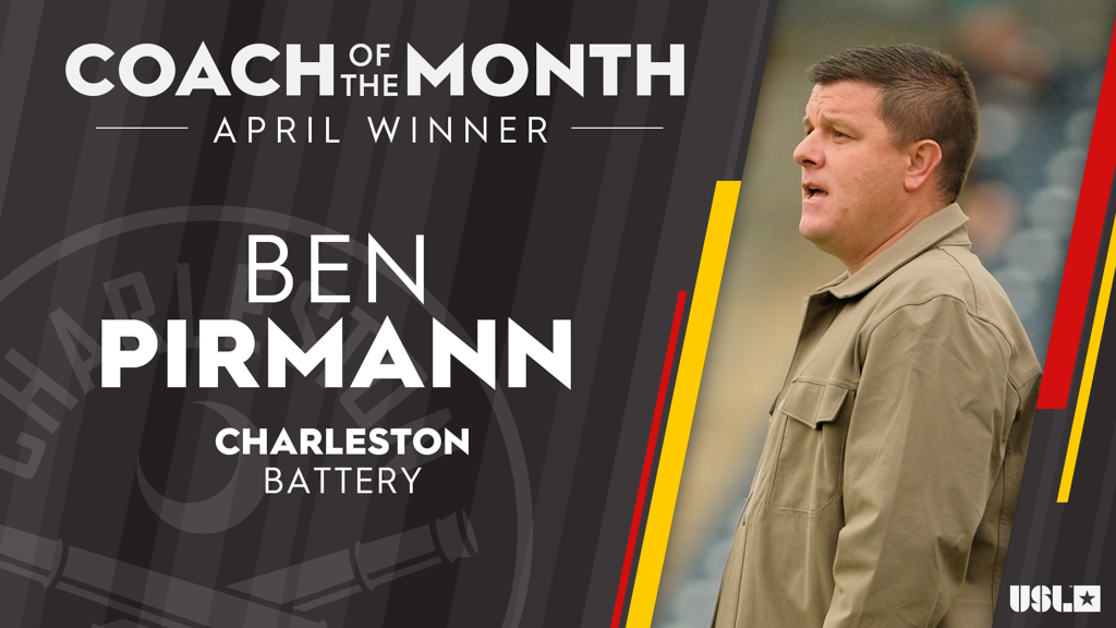 TAMPA, Fla. – The USL Championship announced today the Charleston Battery’s Ben Pirmann had been awarded the Championship’s Coach of the Month award for April, earning the 2022 Championship Coach of the Year the third Coach of the Month award of his career so far.