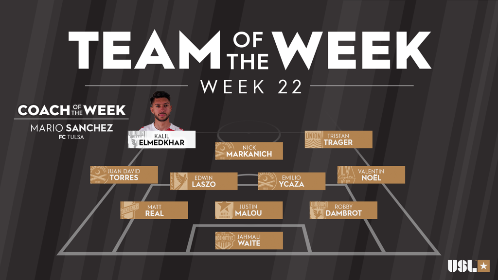 ElMedkhar earned 33 percent of the ballot to claim the award. Charleston Battery forward Nick Markanich and Colorado Springs Switchbacks FC defender Matt Real each finished tied for second on 22 percent after Markanich posted a goal and assist in his side’s 5-0 victory against Indy Eleven on Friday night, and Real delivered a stellar defensive performance in the Switchbacks’ 2-0 win against Phoenix Rising FC on Saturday.