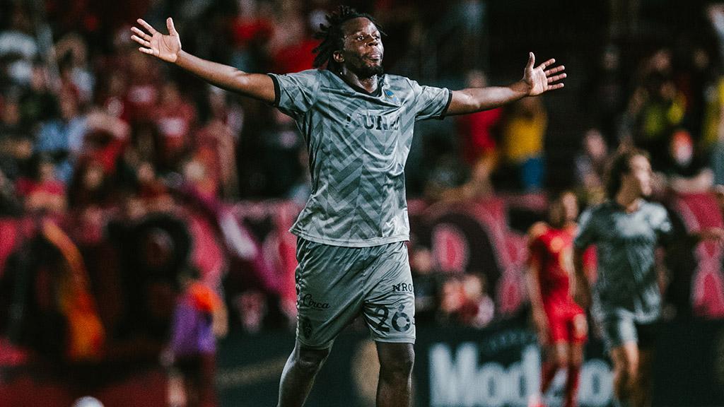 Las Vegas Lights FC's J.C. Ngando sparked his side's dramatic late comeback to earn a 2-1 victory against Phoenix Rising FC and move the Lights into the top four in the Western Conference. | Photo courtesy Maddy Harmon / Phoenix Rising FC