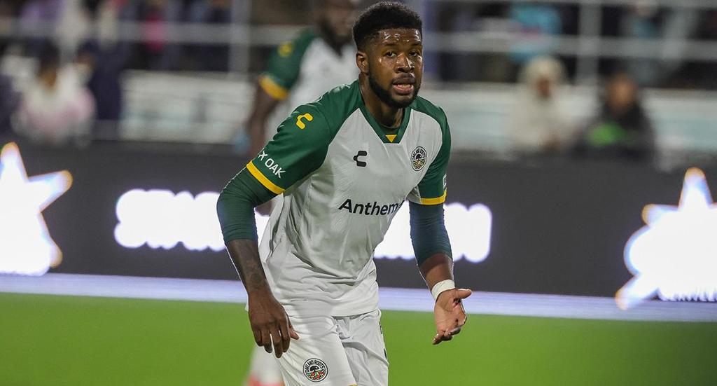 Oakland Roots SC's Kai Greene is set to surpass 20,000 minutes of play in the USL Championship regular season this Saturday as the side hosts Las Vegas Lights FC. | Photo courtesy Kiera Winslow / Monterey Bay FC