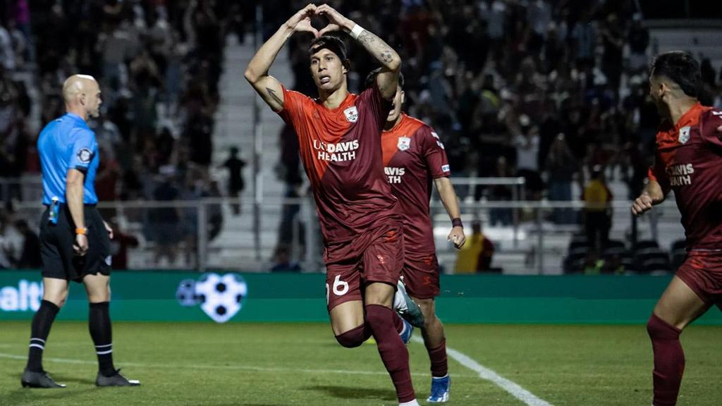 Luis Felipe Fernandes celebrates scoring against the San Jose Earthquakes in Sacramento Republic FC's memorable 4-3 victory after extra time in the 2024 U.S. Open Cup. | Photo courtesy Sacramento Republic FC