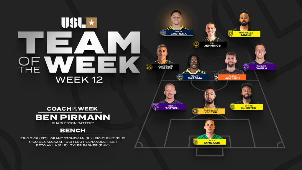 TAMPA, Fla. – The USL Championship today announced the Team of the Week for Week 12 of the 2025 regular season, with El Paso Locomotive FC forward Andy Cabrera named Player of the Week presented by Konami eFootball after recording a two-goal performance in his side’s 2-1 victory on the road against Las Vegas Lights FC on Saturday night.