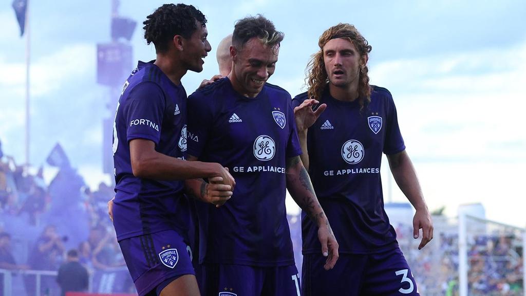Louisville City FC equaled its longest undefeated streak to start a regular season campaign on Saturday with a 2-0 victory against Monterey Bay FC at Cardinale Stadium. | Photo courtesy Kiera Winslow / Monterey Bay FC