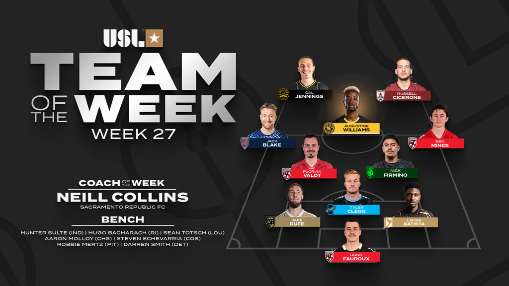 TAMPA, Fla. – The USL Championship today announced the Team of the Week for Week 27 of the 2025 regular season, with Pittsburgh Riverhounds SC forward Augustine Williams voted Player of the Week presented by Konami eFootball with a match-winning, first-half brace in a 2-0 road victory against Oakland Roots SC.