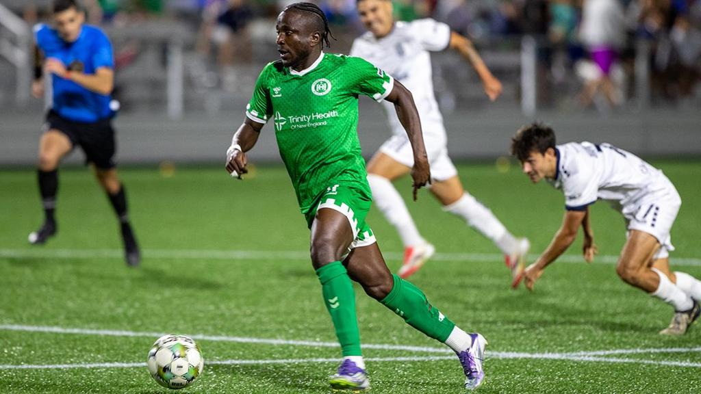 2022 USL Championship Young Player of the Year Michee Ngalina could make his 150th regular season appearance in the league when Hartford visits Monterey Bay FC on Saturday night. | Photo courtesy Axel Zito / Hartford Athletic