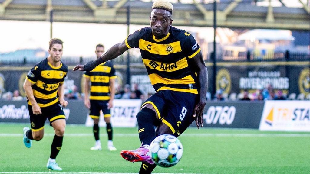 Pittsburgh Riverhounds SC's Augustine Williams recorded his eighth goal in 11 career appearances against Las Vegas Lights FC on Sunday evening in the Hounds' win at Highmark Stadium. | Photo courtesy Chris Cowger / Pittsburgh Riverhounds SC