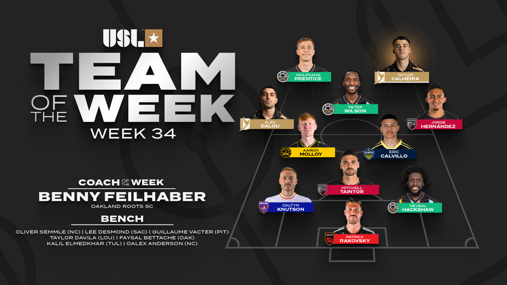 TAMPA, Fla. – The USL Championship announced the Team of the Week for Week 34 of the 2024 regular season on Tuesday, with FC Tulsa forward Taylor Calheira voted the Championship Player of the Week presented by Konami eFootball after recording a pair of goals in his side’s 3-0 victory against Colorado Springs Switchbacks FC at ONEOK Field.
