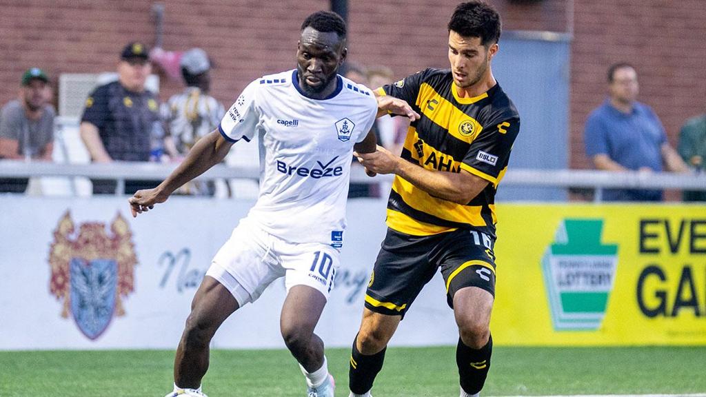 Rhode Island FC's Albert Dikwa will look to lead his side past former club Pittsburgh Riverhounds SC in the Eastern Conference Final of the 2025 USL Championship Playoffs on Saturday night. | Photo courtesy Chris Cowger / Pittsburgh Riverhounds SC