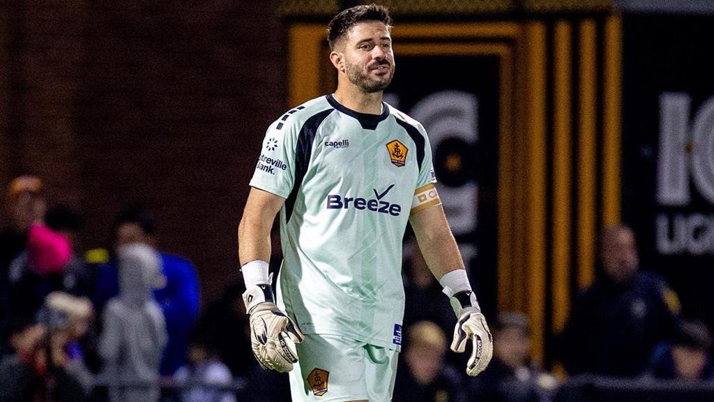 Rhode Island FC goalkeeper Koke Vegas is set to return for the club's third season, one of 20 players currently under contract for the 2026 USL Championship campaign. | Photo courtesy Chris Cowger / Pittsburgh Riverhounds SC