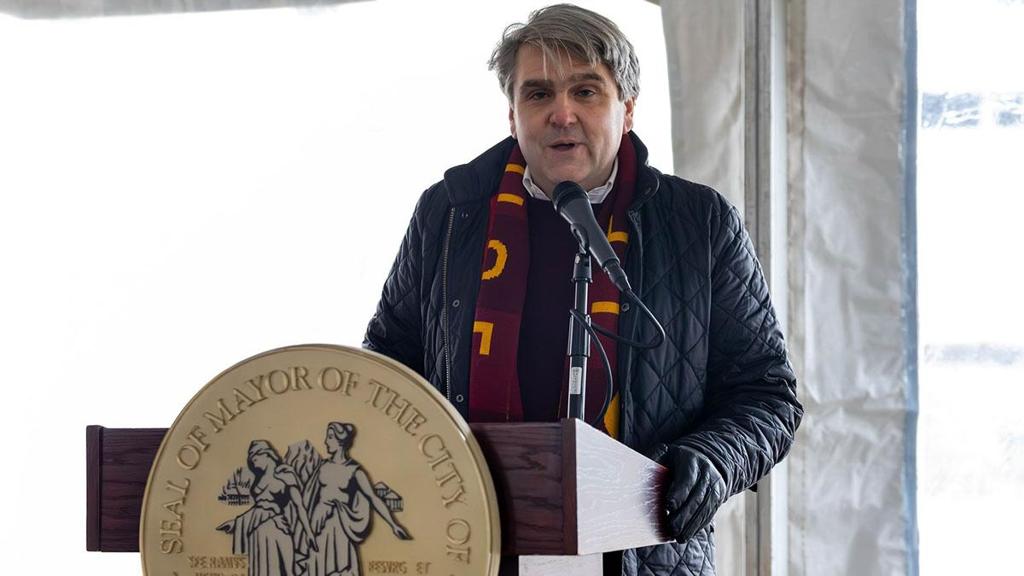 DETROIT – The first stage of the construction of Detroit City FC’s new 15,000-seat soccer stadium and mixed-use development connecting Corktown and Southwest Detroit at AlumniFi Field began on Friday afternoon as Detroit Mayor Mike Duggan and other city leaders were on hand for the start of demolition of the long-vacant Southwest Detroit Hospital that will be replaced by the new venue.
