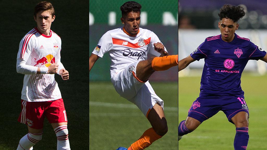 Ben Mines (left), Jesus Ferreira (center) and Jose Carranza (right) are among the current and former USL Championship standouts who will head to Florida this weekend for the first U.S. Men's Youth National Team training camp of the year.